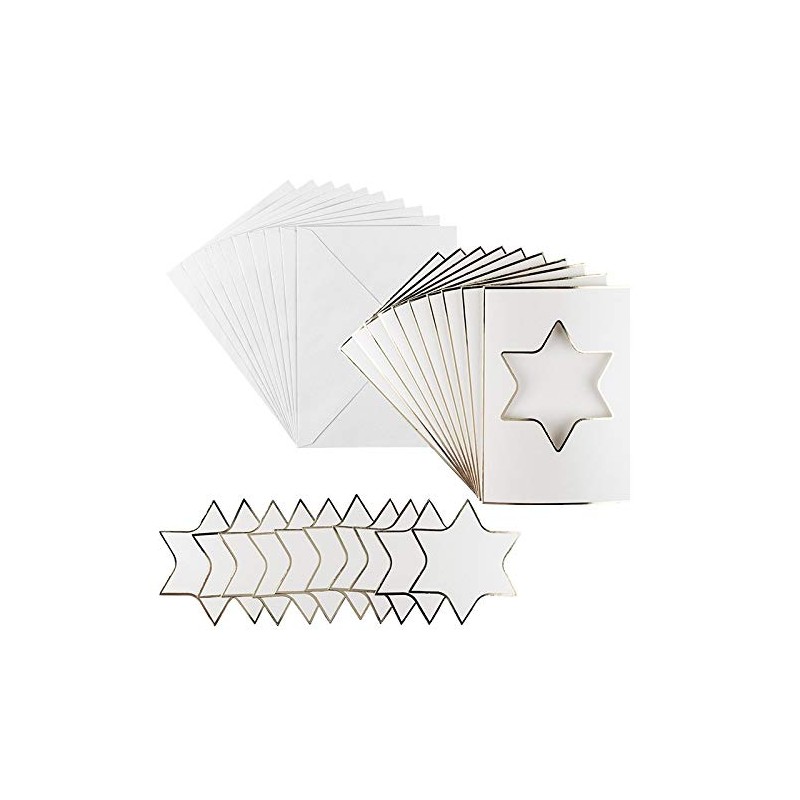 Ideen mit Herz Greeting Card Set with Envelopes & Stamping Parts | 10 x 3-Compartment Cards with Mount | Ideal for Christmas Congratulations | DIN B 6 (Star | Natural White)