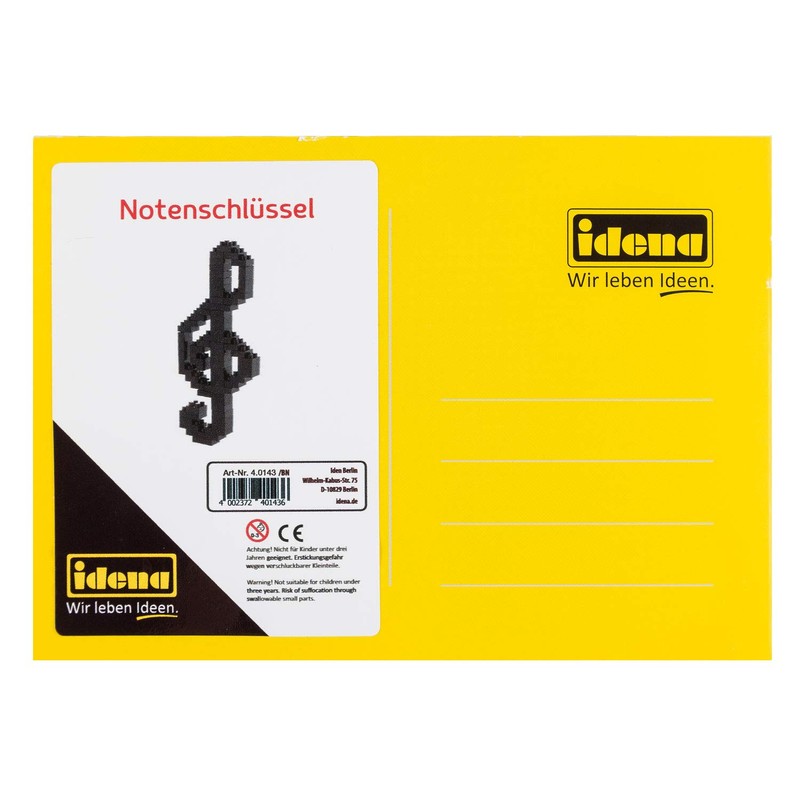 Idena 40143 - Postkarte Notenschlüssel mit einem 3D Modellbauset mit 70 Original Brixies Minibausteinen, Schwierigkeitsgrad 1, Grußkarte oder Mitbringsel für Kinder und Erwachsene