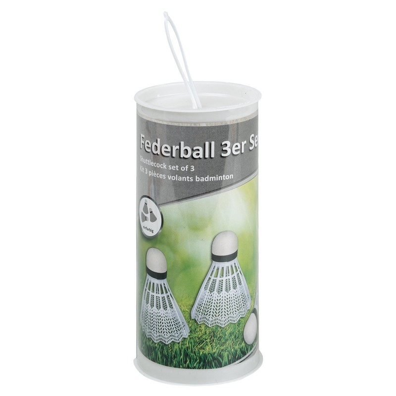 - Inhalt: 3 weiße Federbälle aus Kunststoff und mit Spitze aus Schaumstoff