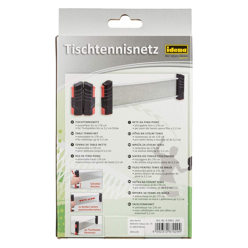 - Net extendable up to 176 cm, net height approx. 15 cm, suitable for tabletops up to 5.2 cm thick