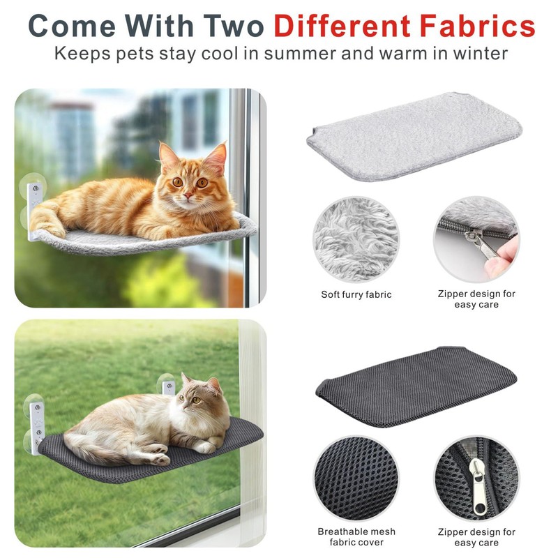 • 【Reversible All-Season Covers】Equipped with 4 covers made of two different fabrics, the hammock offers year-round comfort. The soft furry fabric cover keeps cats warm in winter, while the breathable mesh fabric cover provides cooling comfort in summer. And the zipper design makes it easy for care.