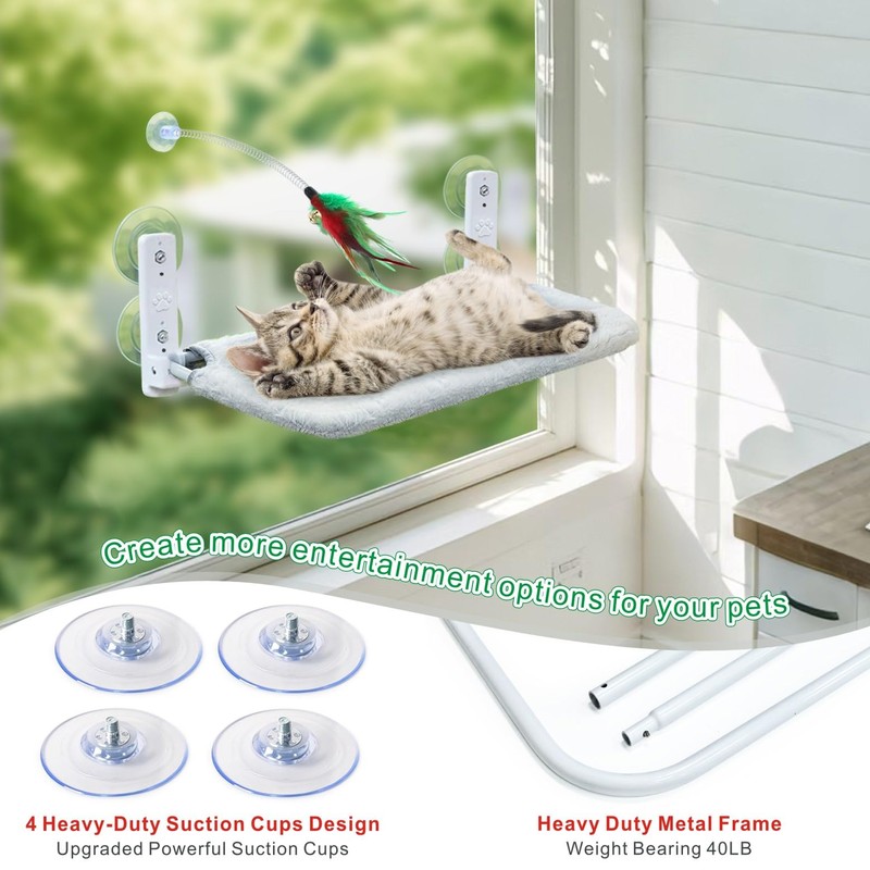 Idepet Cat Window Perch Cordless Foldable Cats Hammock Bed with Interactive T...