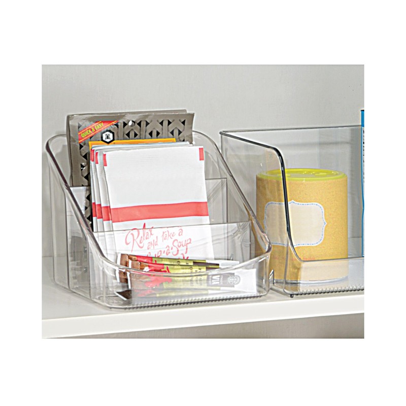 - DIVIDED ORGANIZER - The iDesign Linus Divided Packet Organizer offers compartmentalized storage for your most reached-for pantry staples; Permanent dividers allow you to sort and categorize food items by size, shape, or use, creating custom storage where you need it most; Ideal for corralling snacks, seasoning packets, food pouches, and any other miscellaneous items you want to avoid losing to the back of the pantry; Set of 4