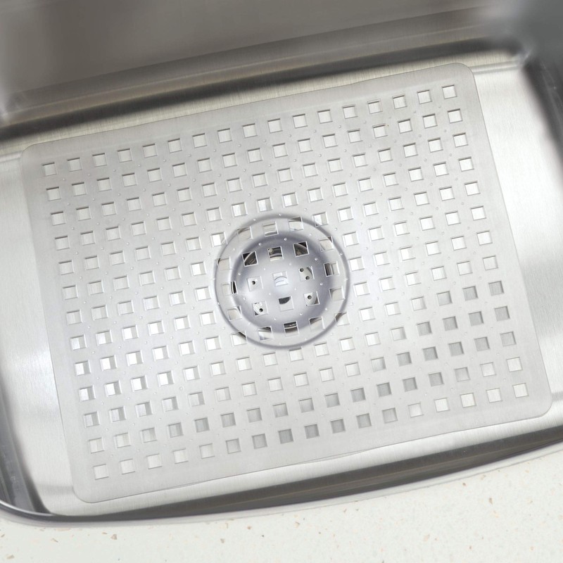 • PROTECTIVE SINK GRID: Plastic mat protects sink bottom, pots, pans, plates, silverware, glasses, and mugs. Open grid design allows water to drain while in use. Ideal for kitchen, bathroom, and laundry room sinks