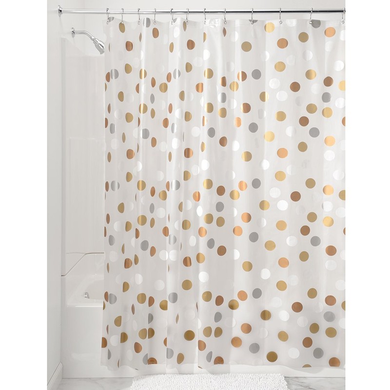 - WHIMSICAL SHOWER CURTAIN: Plastic PEVA shower curtain with printed metallic dots fits standard shower rods. Perfect for kid's bathroom, guest's bathroom, college dorm bathroom, teenager's bathroom, and master bathroom