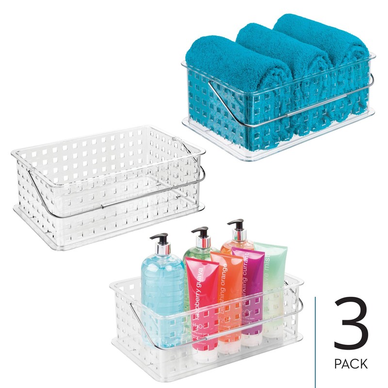 • OPEN DESIGN - Keep all your bath essentials organized and easily accessible with our iDesign Spa Plastic Shower Basket; This hassle-free storage solution is complete with all-over drainage holes to help water escape, allowing toiletries and other personal care items to dry thoroughly; This shower organizer provides convenient storage for your most reached-for bath essentials including shampoo and conditioner bottles, loofahs, scrub brushes, and more; Set of 3
