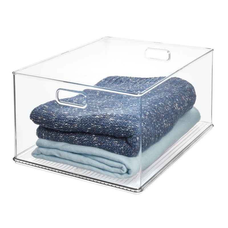 - PORTABLE & STACKABLE - The stacking feature allows you to use multiple units together or individually for custom storage; Modular design allows you to stack them securely with other iDesign storage bins, creating a more thoughtful space for how you live; Raised feet allow bins to stack neatly while conserving space; Finished with integrated handles, bins are easy to transport wherever you need; Keep household clutter under control by conveniently storing an assortment of daily essentials