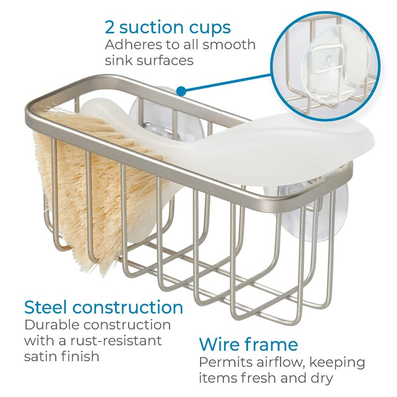 - MADE WITH RUST-RESISTANT STAINLESS STEEL – Featuring durable rust-resistant stainless-steel construction with a satin finish, the iDesign sink sponge caddy stands up to everyday use and is easy to clean with mild soap and water