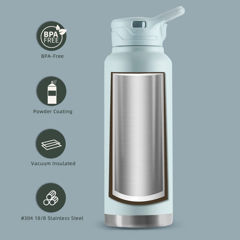 IDEUS Vacuum Insulated Water Bottle, 40 oz Stainless Steel Water Bottles with Straw, Chug and Spout Lid, Reusable Metal Water Bottle Leak Proof Gym Water Bottle, BPA-Free(Light Blue)