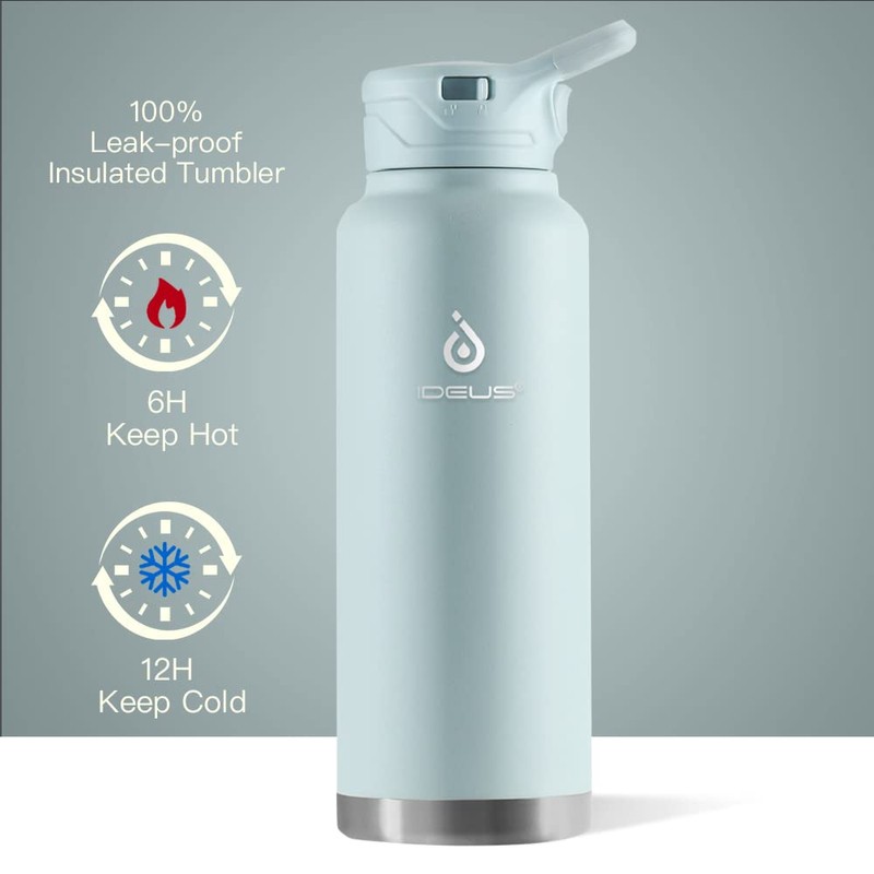 - 【Vacuum Insulation】 - This type of water bottle from IDEUS is made from #304 18/8 stainless steel. 100% BPA-free. Advanced vacuum insulation technology can keep the temperature of beverages for up to 24 hours.
