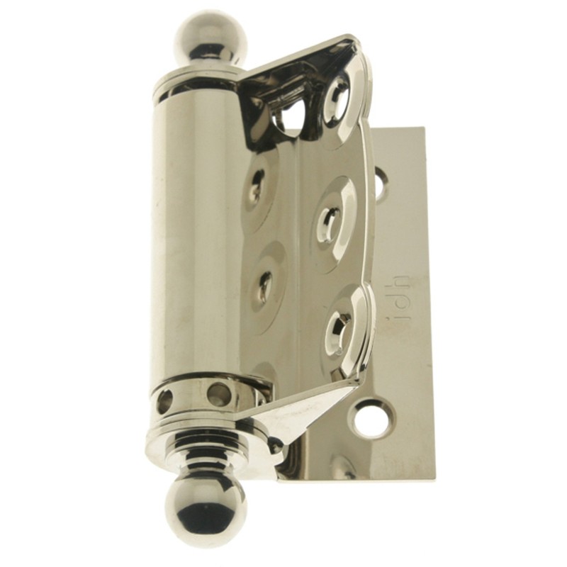 IDHBA 80320-014 Professional Grade Quality Solid Brass Half Surface Adjustable Spring Screen Door Hinges with Ball Finials (Pair), Bright Nickel
