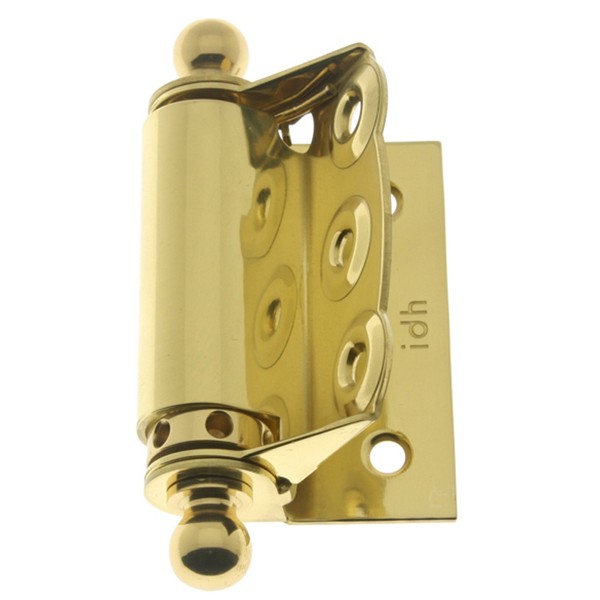 IDHBA idh by St. Simons 80320-003 Professional Grade Quality Solid Half Surface Adjustable Spring Screen Door Hinges with Ball Finials (Pair), Polished Brass