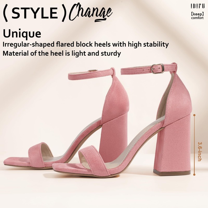 - 【Thoughtful Details】: IDIFU focuses on your concerns, sturdy soft toe and ankle straps materials take care of your feet, toe area design provides ample room for effortless movement, the back ankle part with thick pad protects your ankles from friction, exquisite footbed stitching takes the dressy heels to the elegant level.