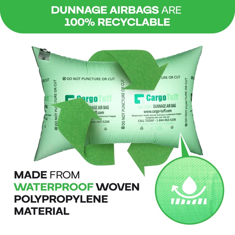 - 【REUSABLE AAR VERIFIED AIRBAGS】 The CargoTuff 48-inch x 72-inch Woven Polypropylene Dunnage Airbags, Level 1. Pack of 5. Reusable, cost-saving packaging, AAR verified. Composed of a co-extruded 72-micron polyethylene inner layer and 65 gr/m² waterproof woven polypropylene outer layer with 18 gr/m² lamination