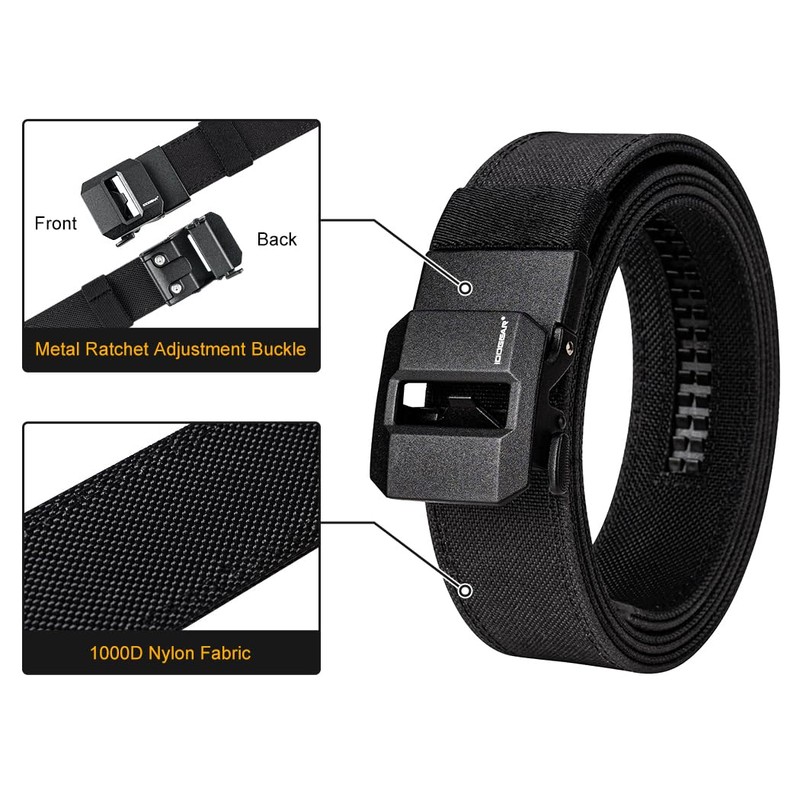 IDOGEAR Tactical Gun Belt 1.5 '' EDC Stiff Heavy Duty Belts 38mm Nylon Utility Harness Ratchet Belt Reinforced for Concealed Carry (Black, Small)