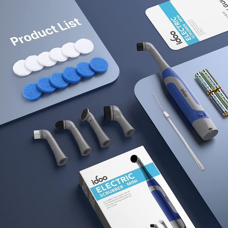 iDOO Electric Grout Brush | Rechargeable with 6 Replacement Heads for Deep Cleaning Durable Cordless