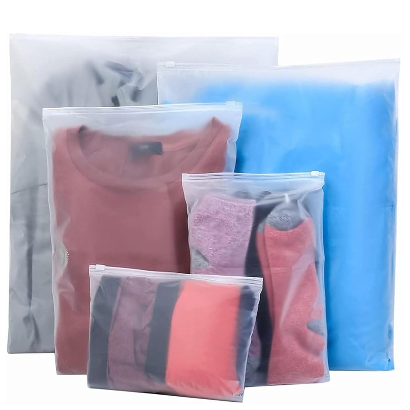 iDopick 30 Pack Frosted Zipper Bags for Clothes, Plastic Clear Clothes Packag...