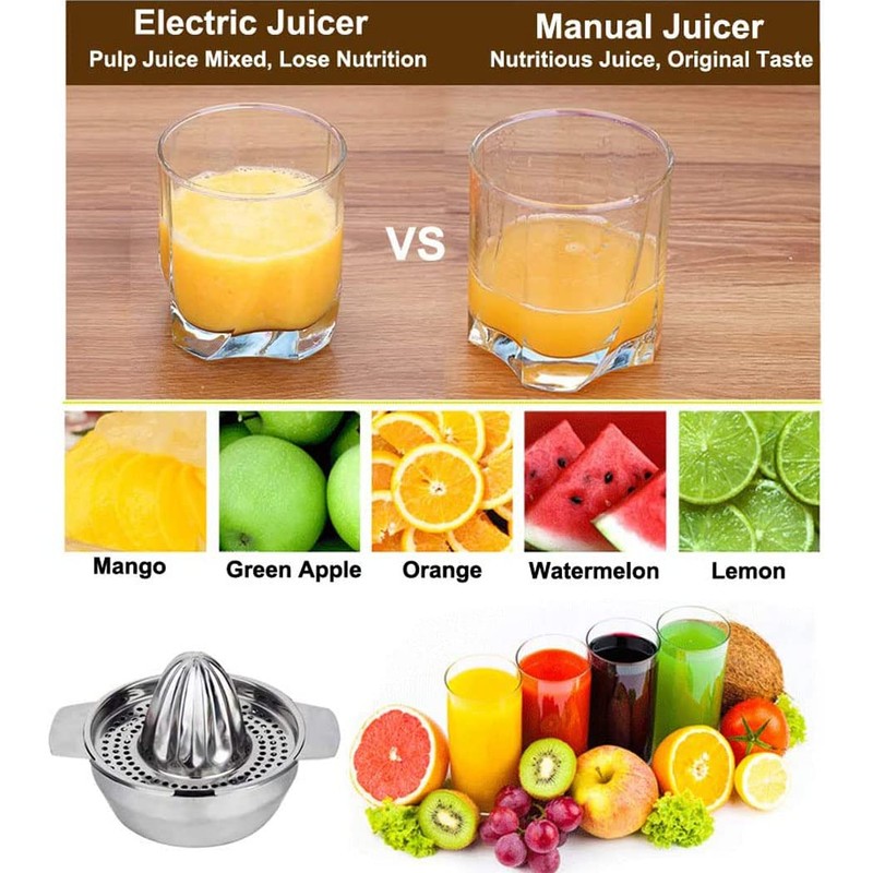 - Enjoy tasty fresh squeezed juice anytime of the day! This handy stainless steel juicer is great to quickly extract juice from lemon, lime, orange and other citrus
