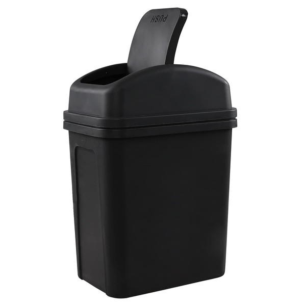 Idotry 1.8 Gallon / 7 Liter Plastic Trash Can, Small Garbage Bin with Swing Lid, Black