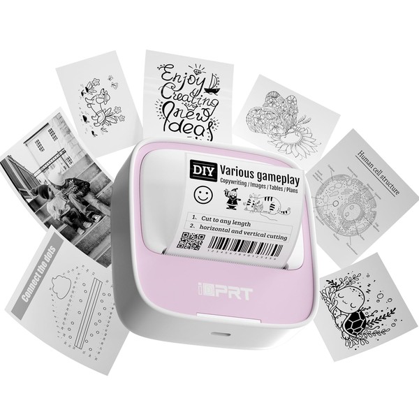 iDPRT Sticker Printer, Portable Thermal Printer with 1 Roll Sticker Paper, Bluetooth Inkless Printer Mini Label Maker for Study, DIY, Notes, Mini Label Maker with Multiple Template in Free App, Pink