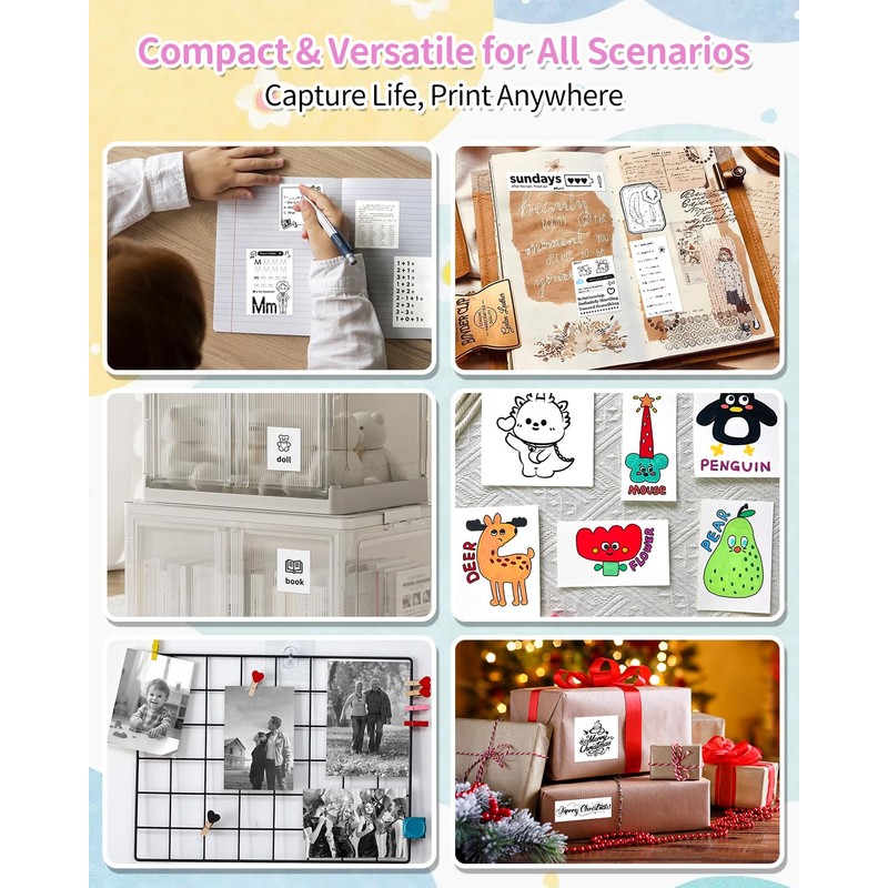 - [Versatile for All Scenarios]This pocket-sized thermal printer is lightweight and portable, perfect for home, school, or office use. Easily tackle homework labels, DIY stickers, shopping lists, item tags, and work planners—it seamlessly adapts to every aspect of your life.