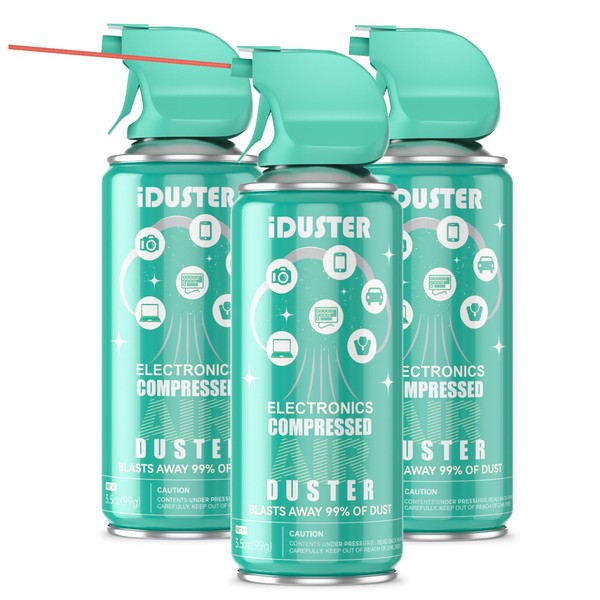 iDuster Compressed Canned Air Duster for Computer - Disposable Electronic Keyboard Cleaner for Cleaning Duster, 3PCS(3.5oz)