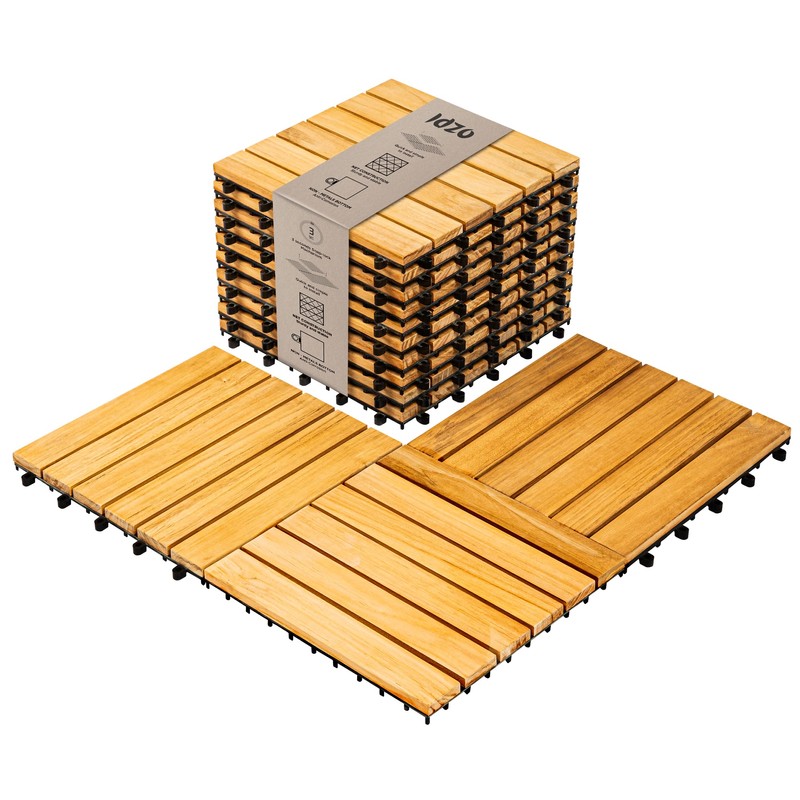 Idzo Set of 10 Premium Teak Deck Tiles, Distinctive Teak Wood Flooring with Innate Oil That Can Withstand Water & Weather Elements, 3 Seconds Snap-Lock Teak Shower Tiles with Stable Mesh Base, 6 Slats