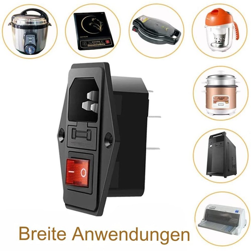 IEC Built-in Socket C14 with Red Switch 4-Pin Switch, 6 A/250 V, Fuse and Connection Cables, 3-Pin 220-250 V/10 A Audio IEC Socket Installation Coupling Plug Socket