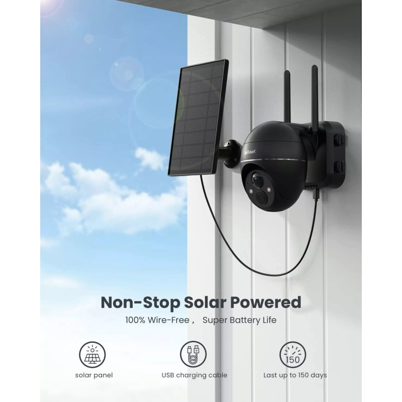 - ✅【Freedom from Wiring and Power Issues】ieGeek security camera outdoor has a built-in 15000mAh rechargeable battery and matching solar panels(with 3-meter cable) which free you from the trouble of charging. The ieGeek outdoor security camera does not need troublesome power cords and network cables, so you can easily install it without drilling holes in the house wall.equipped upgraded 4dBi dual antenna, which allows the camera to connect quickly and stably to WiFi ,video viewing will be smoother.