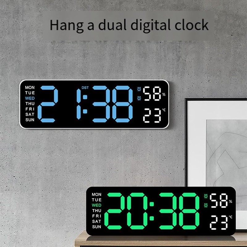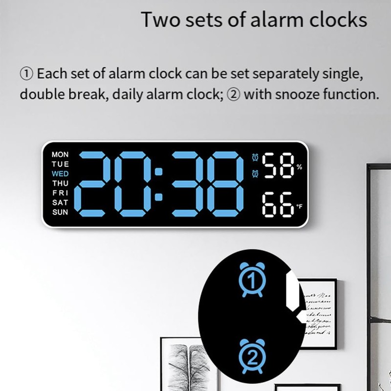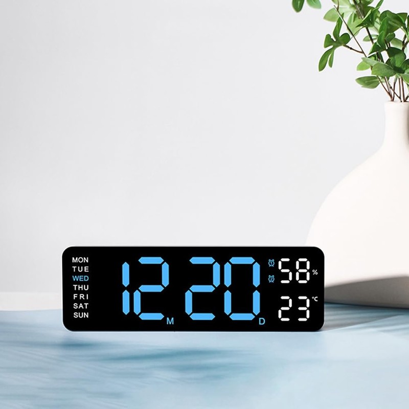 Iegefirm Large Digital Wall Clock, Temperature and Humidity Week Display, Electronic LED Table Alarm Clock 12/24 Hours, Orange