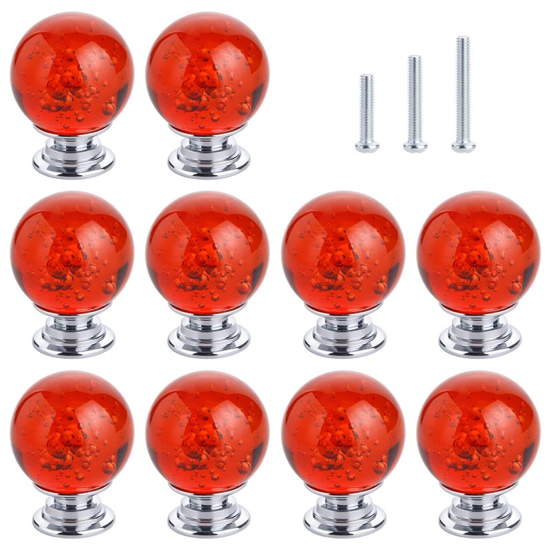 - 3 Sized Screws: The red round glass bubble cabinet knobs come with 3 different length screws which is very convenient for your different projects. Every single red crystal dresser knob comes with 3 different size screws- 0.87inch(22mm), 0.98inch(25mm) and 1.18inch(30mm) screws. 10 pcs knobs include 30 pcs screws totally.