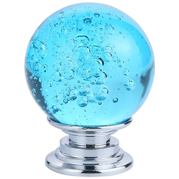 IEIK10 PCS Crystal Cabinet Knobs Azure Blue Round Glass Bubbles Knobs Smooth Drawer Pulls Handle for Home, Cabinet, Drawer and Dresser with 3 Different Size Screws, 30MM (Aqua Blue)