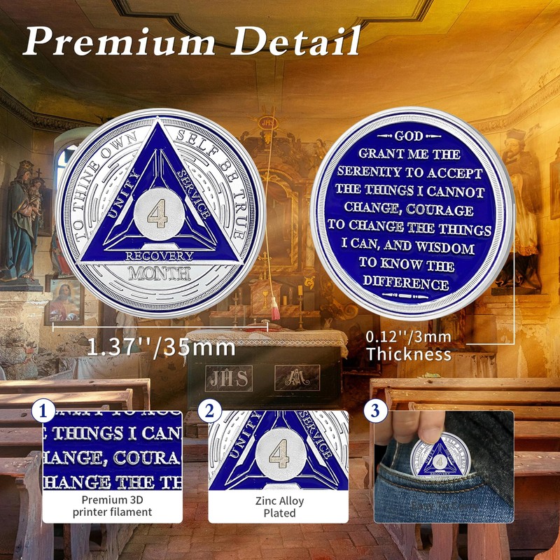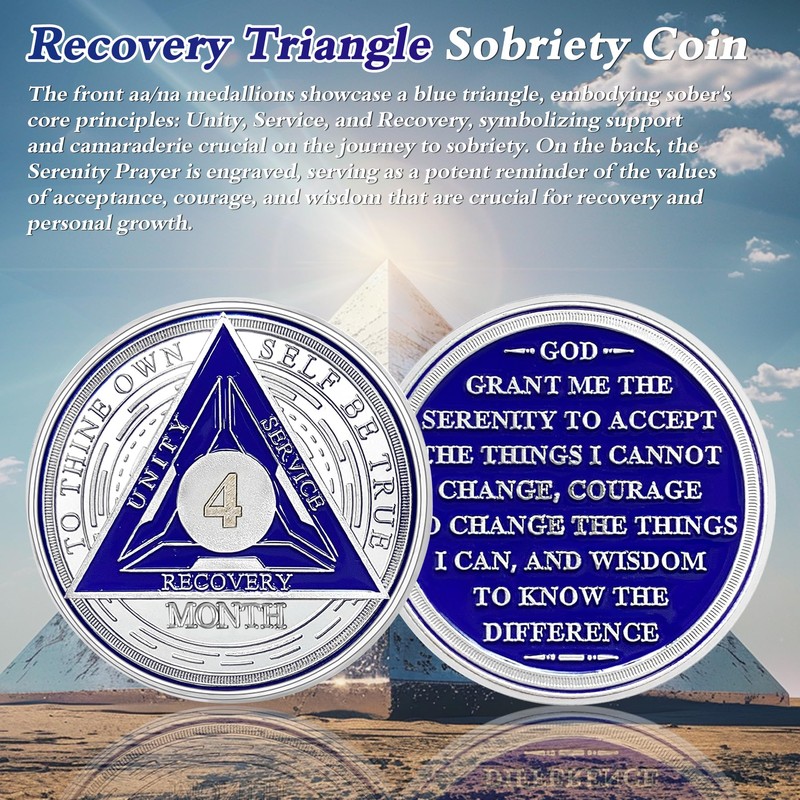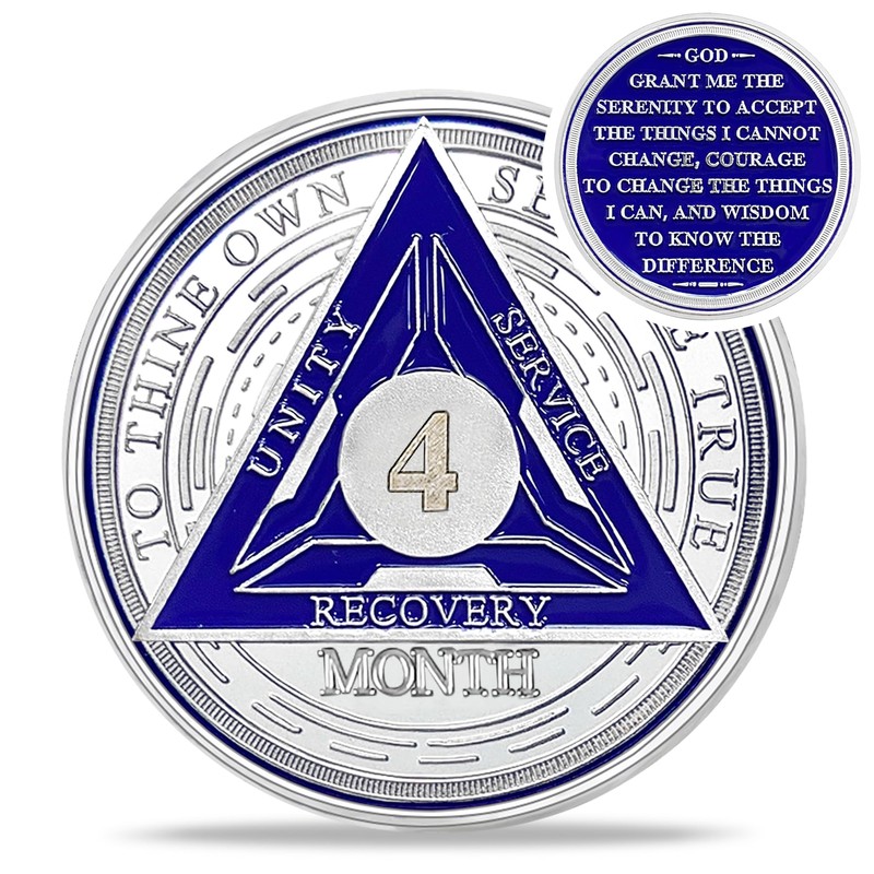 - 4 Month Triplate Sobriety Chip: These AA Coin and Medallions offer a powerful reminder and support for you or your loved ones on the journey to recovery, representing proud recognition of the progress and accomplishments. A great commemorative chip that remind you to keep moving towards a better and healthier life