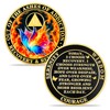 Back of AA Medallion:Showcases an inspiring inscription: “Today, I choose recovery. I choose strength over weakness, hope over despair, and love over fear, growing stronger and more resilient each day”, conveying the commitment to choosing strength, hope and love in the recovery process. And words “SERENITY,” “WISDOM,” and “COURAGE” encourage the holder to focus on daily efforts in recovery