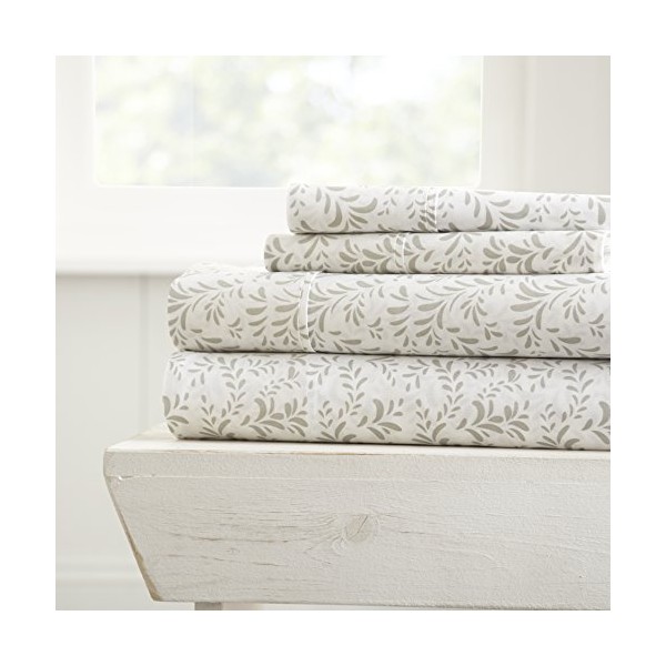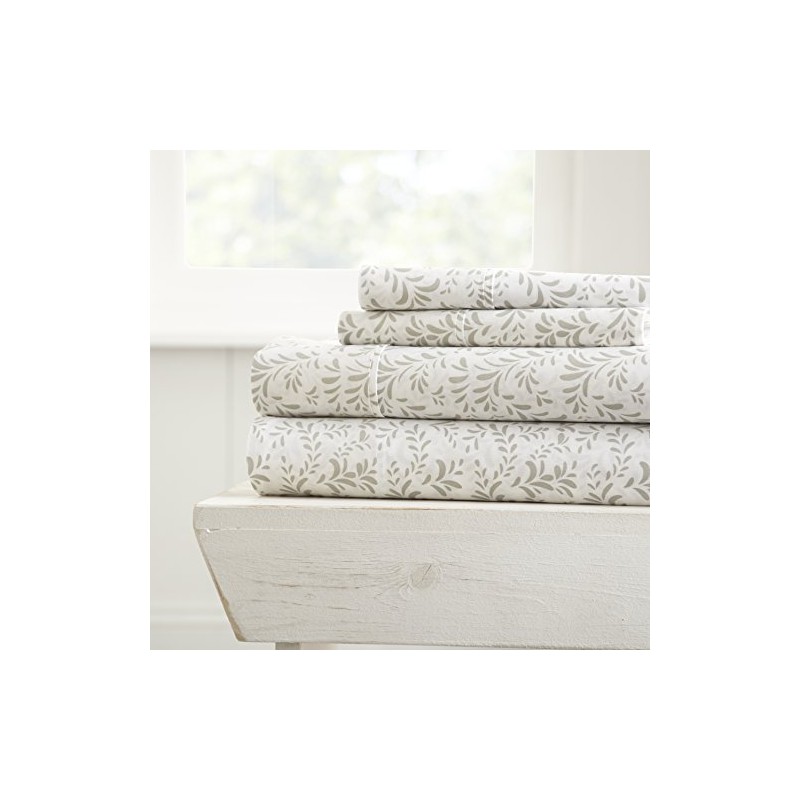 ienjoy Home 4 Piece Sheet Set Patterned, Full, Burst of Vines Gray