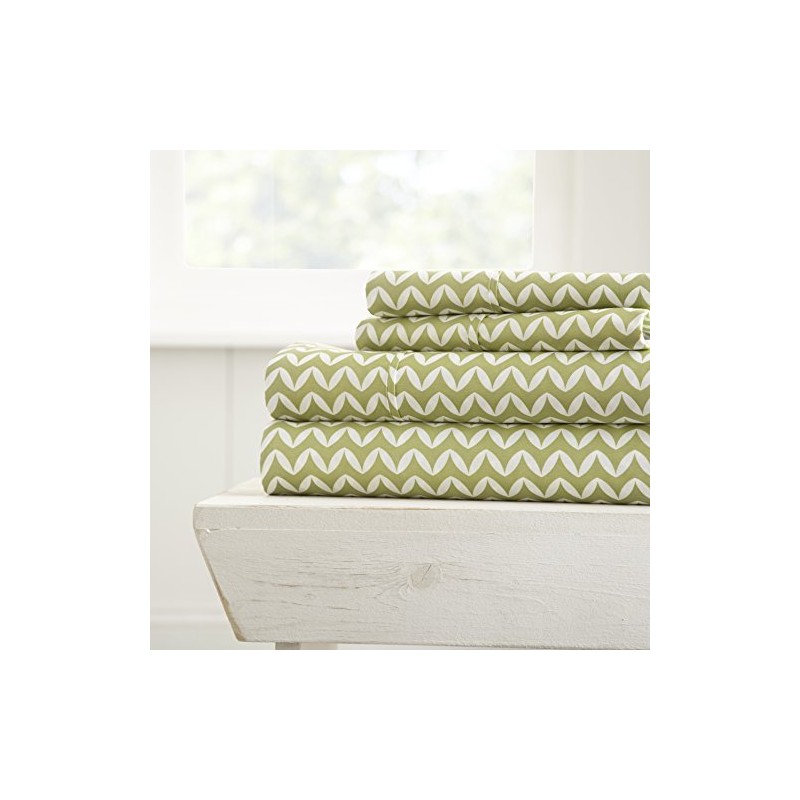 ienjoy Home 4 Piece Sheet Set Patterned, King, Puffed Chevron Sage