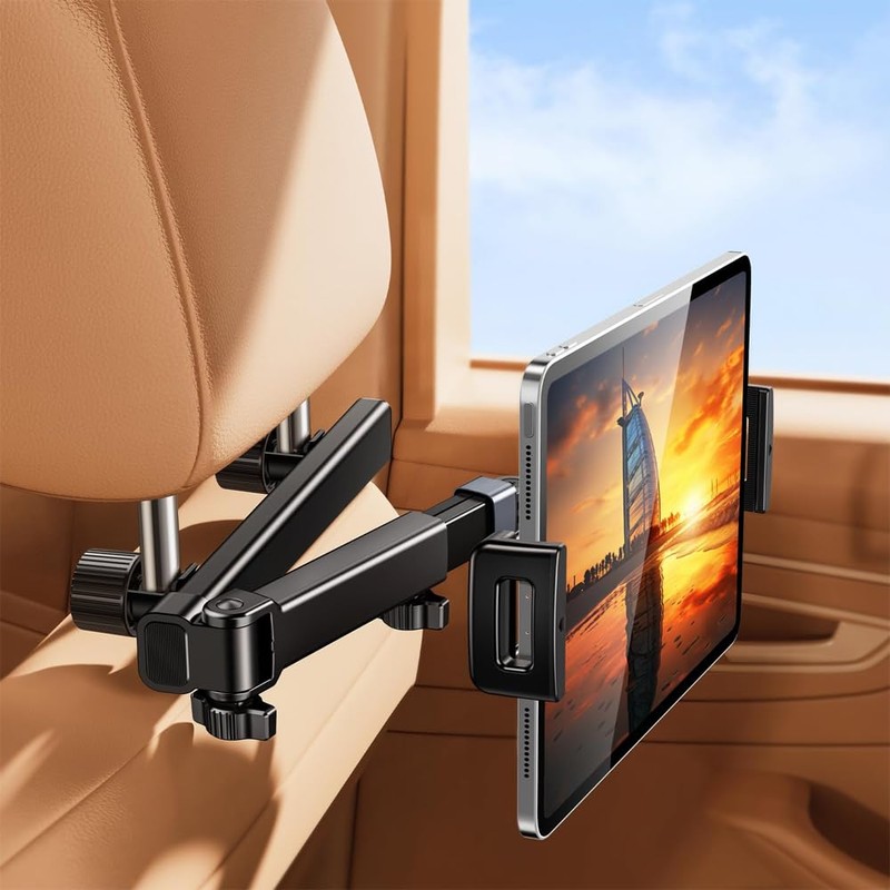 - Car Adjustment Designed for the car environment, installed on the headrest, convenient for the passengers in the back seats to use tablets and enhance the entertainment and office experience while driving.