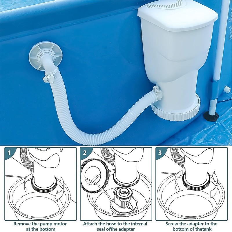 2. By replacing the skimmer pump with a sand pump and using the appropriate hose adapter, the filtering of the pool can be effectively improved and maintenance and cleaning effort can be reduced.