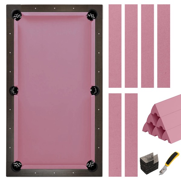 iEsstros 8ft Pool Table Felt and Bumper Kit for Pool Table Billiard Cloth with K66 Pool Table Bumpers, K66 Pool Table Cushions Facing, 6 Pcs Cloth Strips and Staple Remover-Pink