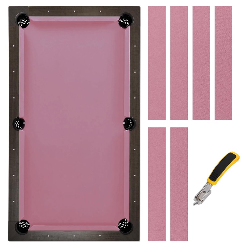 iEsstros Pool Table Felt 9 ft Billiard Cloth 9ft with 6 Pcs Cloth Strips and Staple Remover Pool Table Felt Replacement Kit Parts-Bubblegum Pink