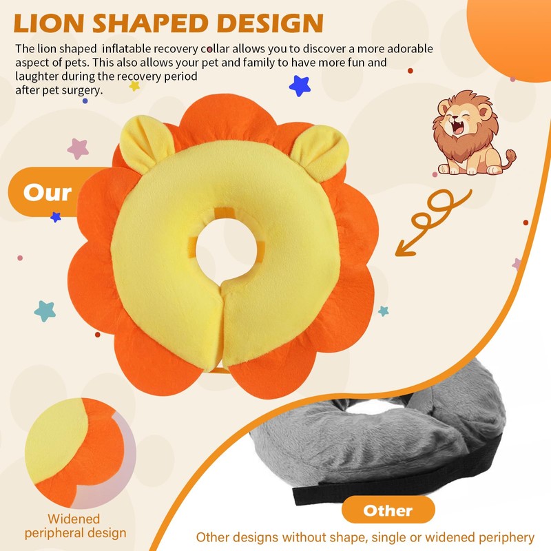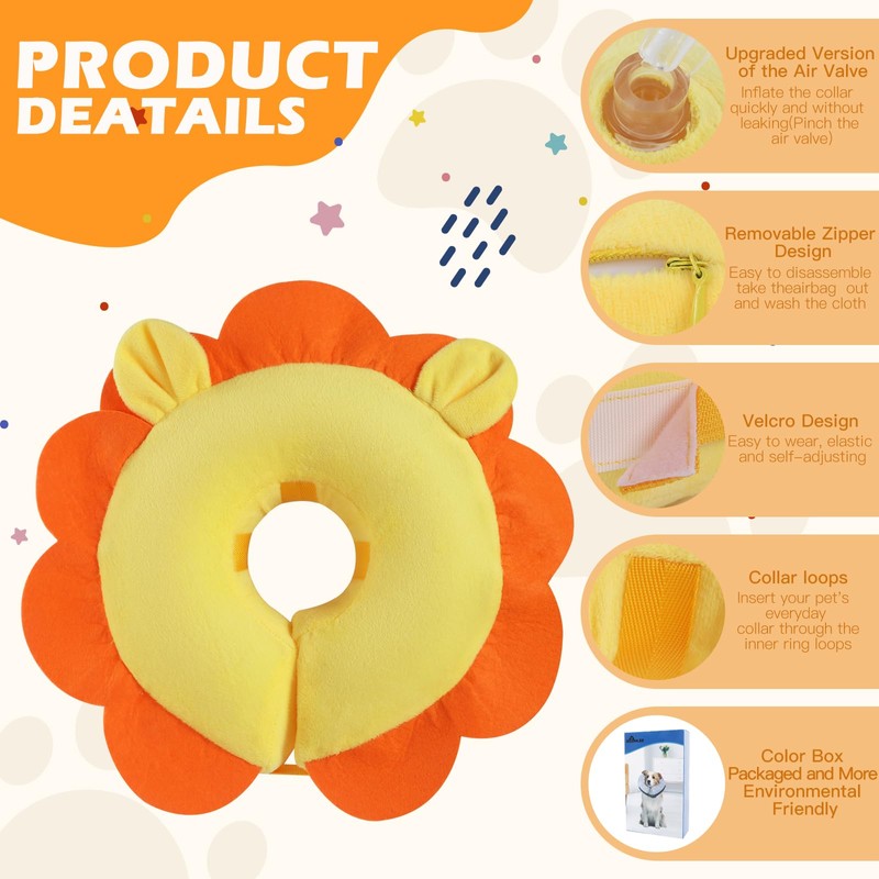 IEUUMLER Inflatable Recovery Dog Collar, Protective Donut Cone, Adjustable Soft Collar for Dog and Cat After Surgery Prevent from Biting & Scratching EU002 (L (Neck:14"-18"), Orange Lion)