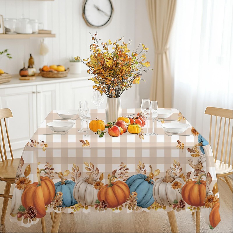 iEvery Autumn Table Cloth, Pumpkin Thanksgiving Wipeable Tablecloth Autumn Home Decor, Rectangular Plaid Table Cover for Fall Harvest Party Holiday Outdoor Picnic 140x180cm