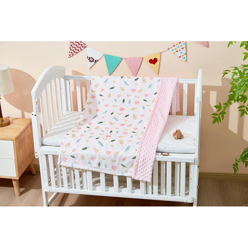 - Cozy Minky Texture: This nursery blanket features a soft and plush minky fabric on one side with a smooth dotted texture for soothing comfort.