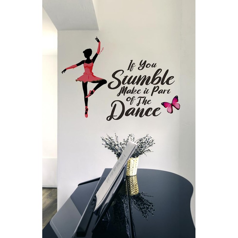 If You Stumble Make it Part of The Dance Wall Decal, Inspirational Quotes Sticker Black Girl Ballet Butterfly Decor Motivational Saying Wallpaper Mural Viny for Girl’s Bedroom Classroom Dance Studio