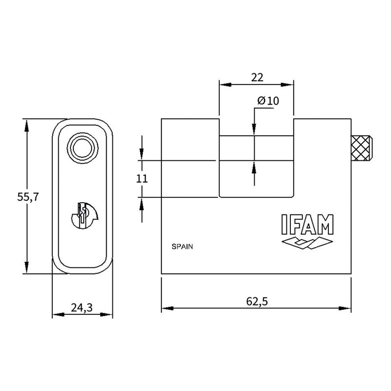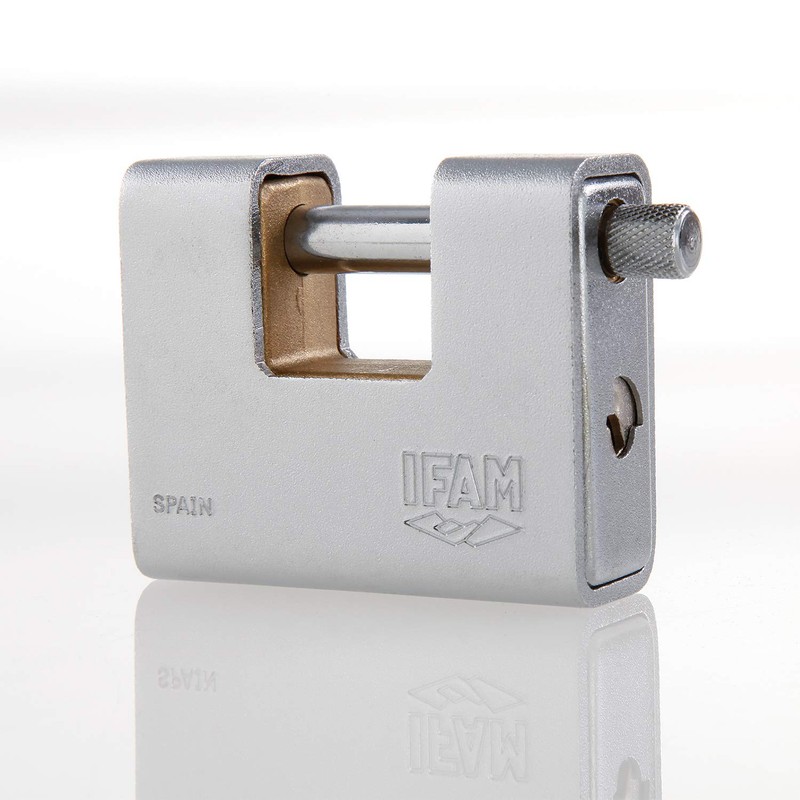 IFAM Armoured Series Hardened Steel Monoblock Padlock, Rectangular U-Shape, Length 90 mm, High Level of Protection, Security and Resistance, Chrome, Includes Keys
