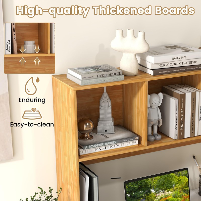 • PREMIUM QUALITY CONSTRUCTION: Built to withstand daily use, this desk bookshelf is made of high-quality thickened boards for durability. It stays safe and secure with anti-toppling devices at the back and non-slip foot pads underneath for added stability.