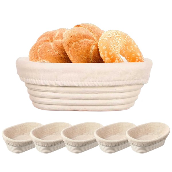 iFCOW 6 inch Banneton Bread Proofing Basket, 6pcs Oval Dough Proofing Bowl with Liner Natural Rattan Sourdough Bread Baking Basket for Home Bakers