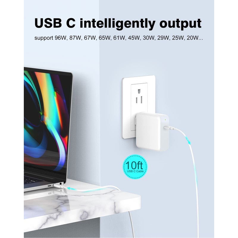 - Original 96W is the Best Power to Keep MacBook Battery Healthy: strong power support the high-speed processing capacity of M1, M2 chip, work flawlessly with MacBook Pro 16 15 14 13 inch 2023, 2022 2021 2020 2019 2018 2017 2016, MacBook Air 15 13 in 2024 2023 2022 2020, Surface Book 3 / 2(Use USB C charging port), Dell, Lenovo, HP, iPad Pro 12.9 11, iPad 10, iPad Air 5 4, iPad Mini 6, iPhone 15, 15Pro, 15Plus, 15Pro Max, etc