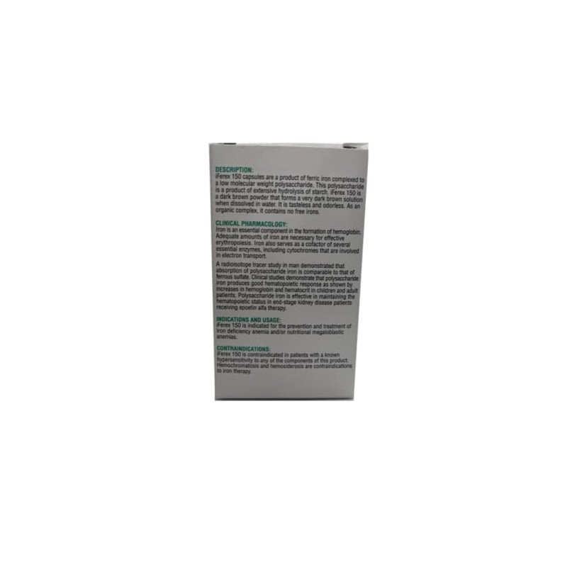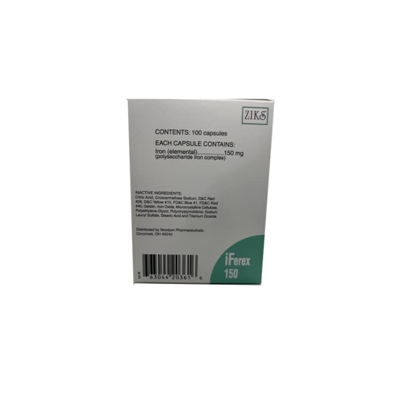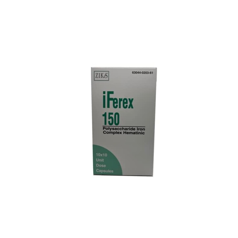 iFerex 150 Polysaccharide Iron Complex Capsules by Ziks - 10 x 10 Unit dose Blister Pack- 100 Capsules