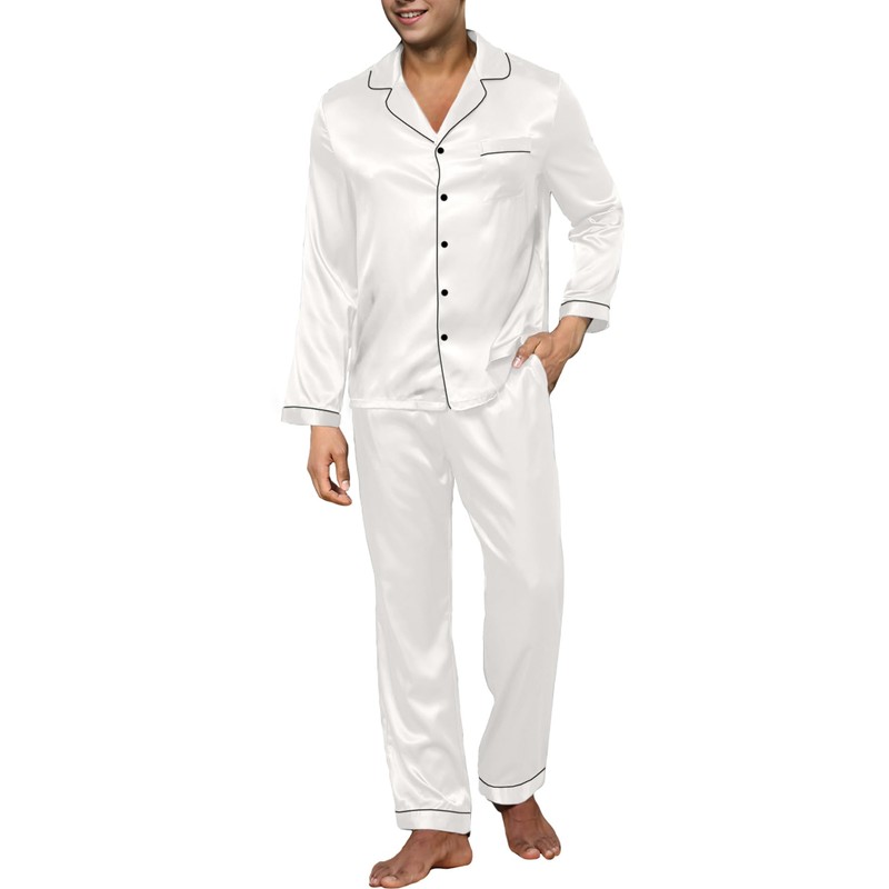 • Material: This satin pyjamas set are made of 95% polyester and 5% spandex. Silky, shiny, comfortable and lightweight. mens pajama pants and top sets is a must-have in your wardrobe.